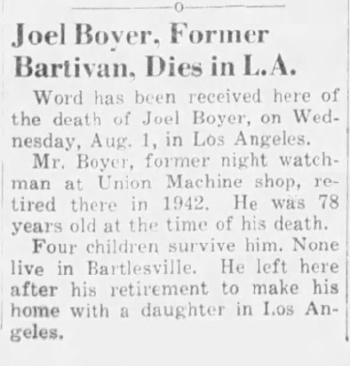 - Joel Boyer b. 27 Aug 1915, d. 11 Jun 1967