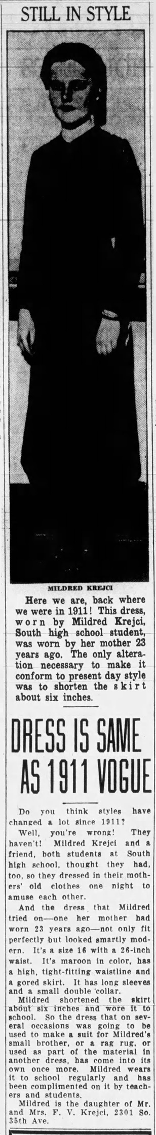 | Father* | Frank Krejci Jr. b. 7 Nov 1861, d. 16 Apr 1943 |