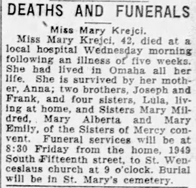 - Mary Barbara Krejci b. 15 Apr 1878, d. 22 Nov 1957
