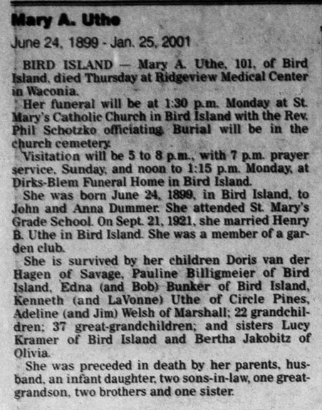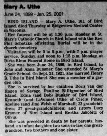 - Adeline Rose Uthe b. 14 Jun 1931, d. 11 Mar 2005