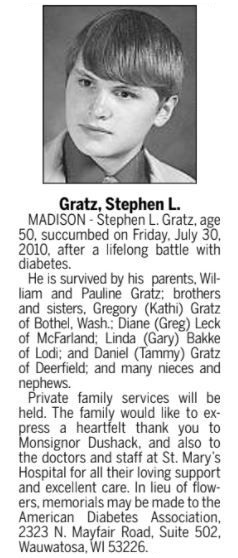 - Stephen L. Gratz b. 31 Aug 1959, d. 30 Jul 2010