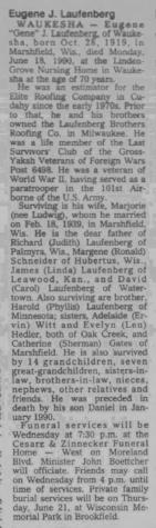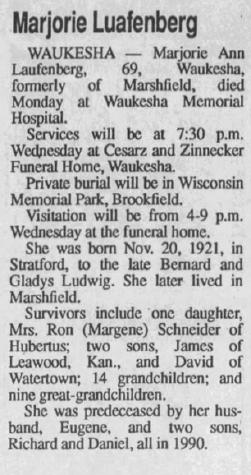 - Daniel Joseph Laufenberg b. 3 May 1950, d. 10 Jan 1990