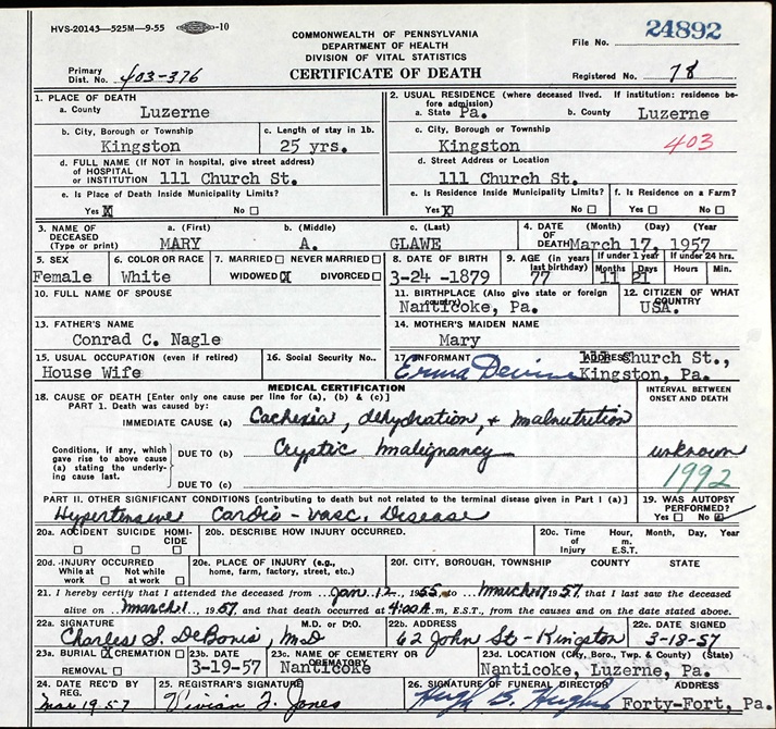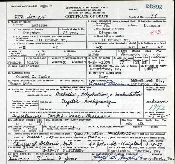 F, b. September 1899, d. between 1953 and 1961