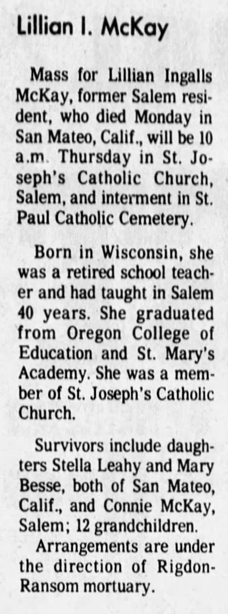 Children of Lillian Ingalls and James Daniel Stanislaus McKay