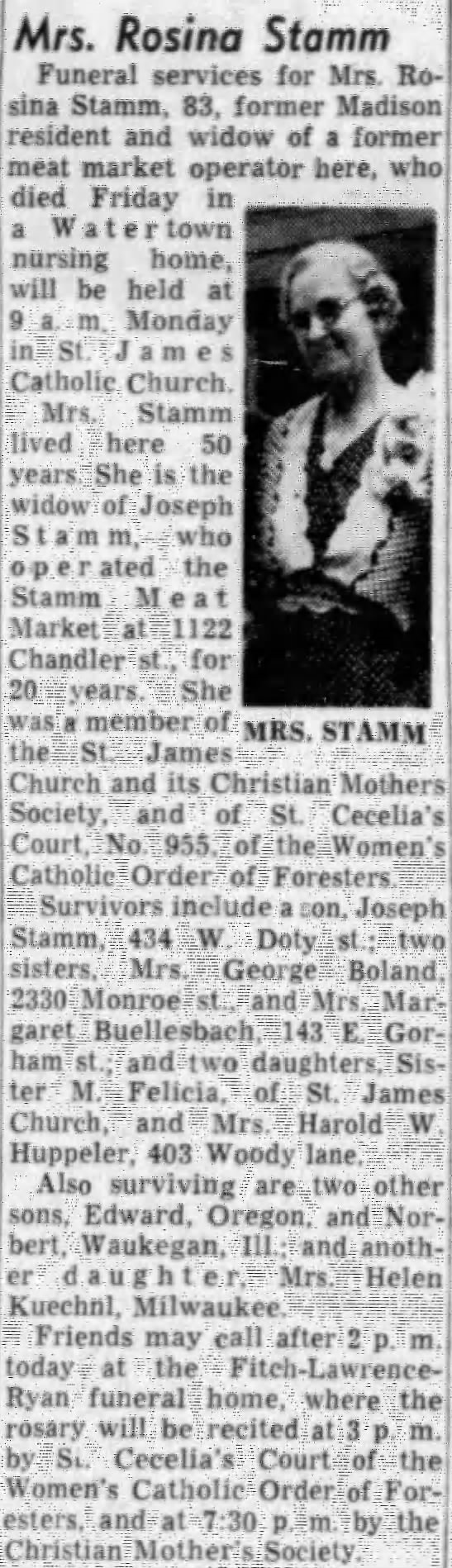 - Joseph Francis Stamm+ b. 9 Mar 1911, d. 10 Mar 1988