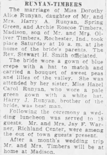 | Mother* | Dorothy Alice Runyan b. 1902, d. 19 Oct 1991 |