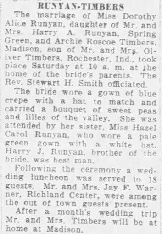| Father* | Archie Roscoe Timbers b. 11 Sep 1888, d. 7 Aug 1977 |
