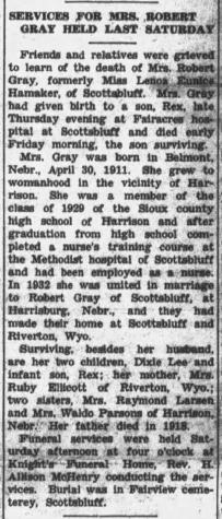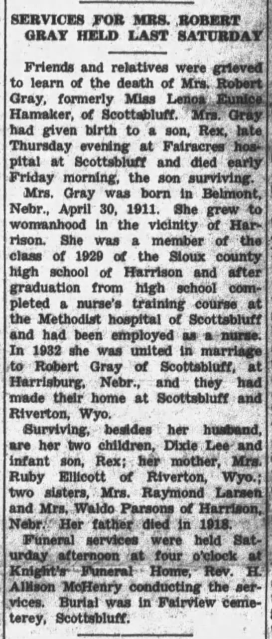 - Leona Eunice Hamaker b. c 1912, d. 15 Aug 1941