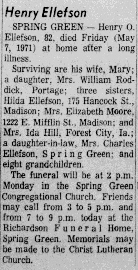 - Charles E. Ellefson b. 1917, d. Jan 1961