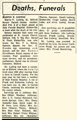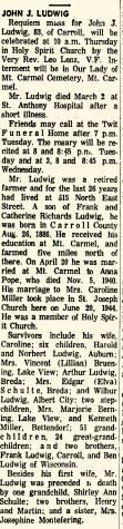 - Wilmer Aloisius Ludwig b. 22 Mar 1929, d. b 1975