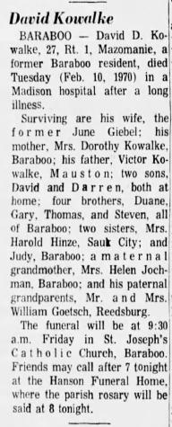 Father* | David D. Kowalke b. 1942, d. 10 Feb 1970 |