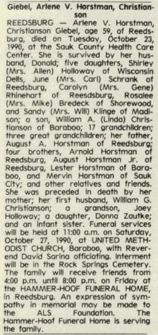 Mother* | Arlene Horstman b. c 1931, d. 23 Oct 1990 |