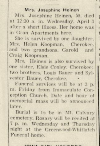 Child of Josephine M. Bauer and Theodore Frank Heinen
