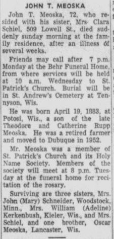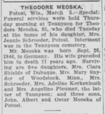 - John Theodore Meoska b. 19 Apr 1883, d. Mar 1956