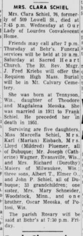 - Marcella Schiel b. 3 Jul 1914, d. 3 Aug 1976