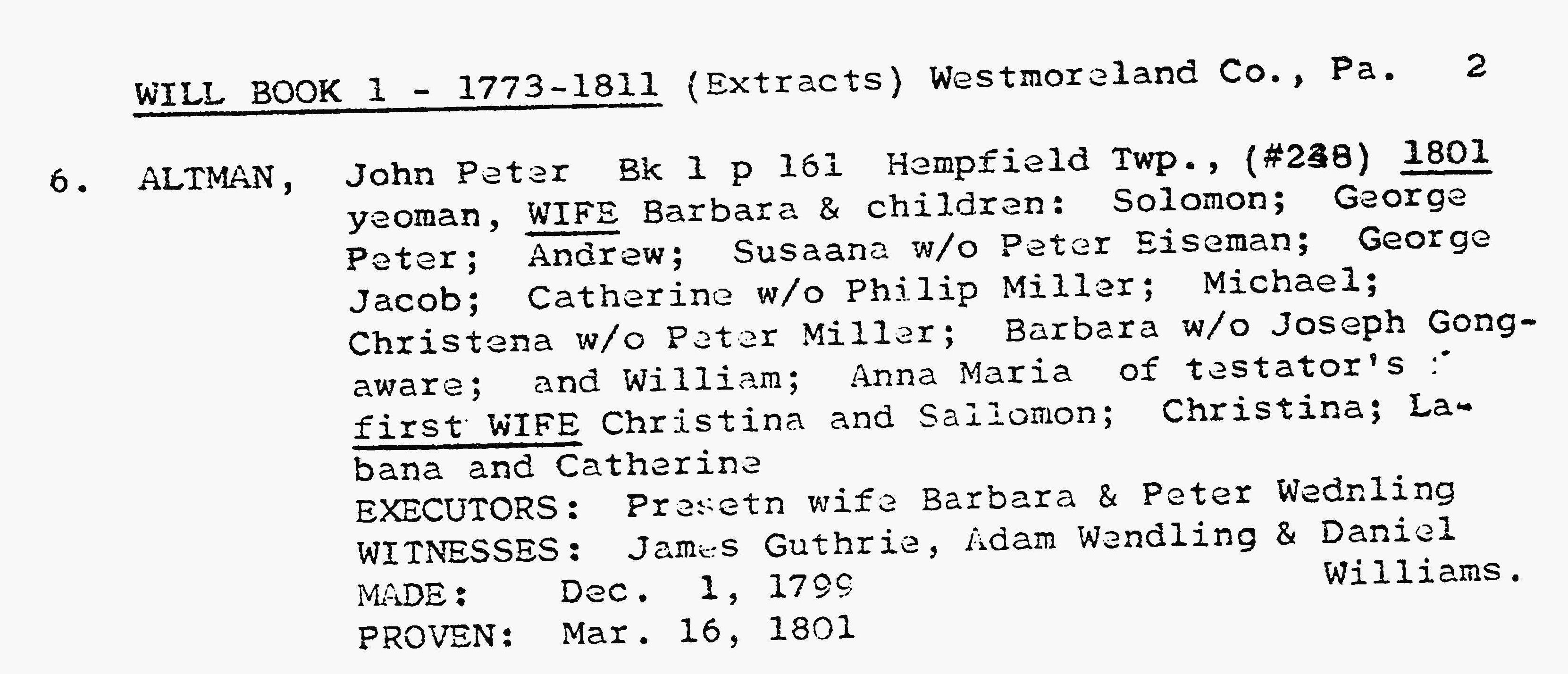 - Catherine Altman b. May 1770, d. 11 Nov 1834