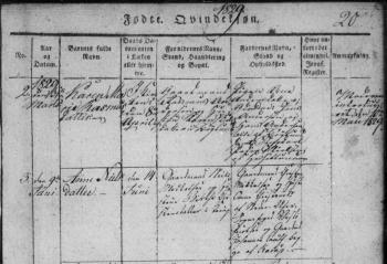 - [S383] The Danish National Archives; Church Records, Ane Johanne Nielsdatter birth record, Page 6 Image 7, Kontraministerialbog (1814 - 2002) Denmark.