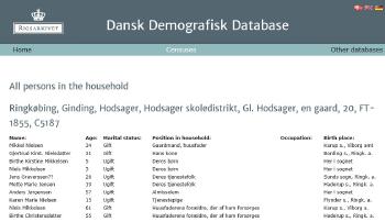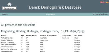 - [S383] The Danish National Archives; Church Records, 1890 Denmark Census - Ringkøbing, Ginding, Hodsager - incl Berte Kristensen (Birthe Christensdatter).