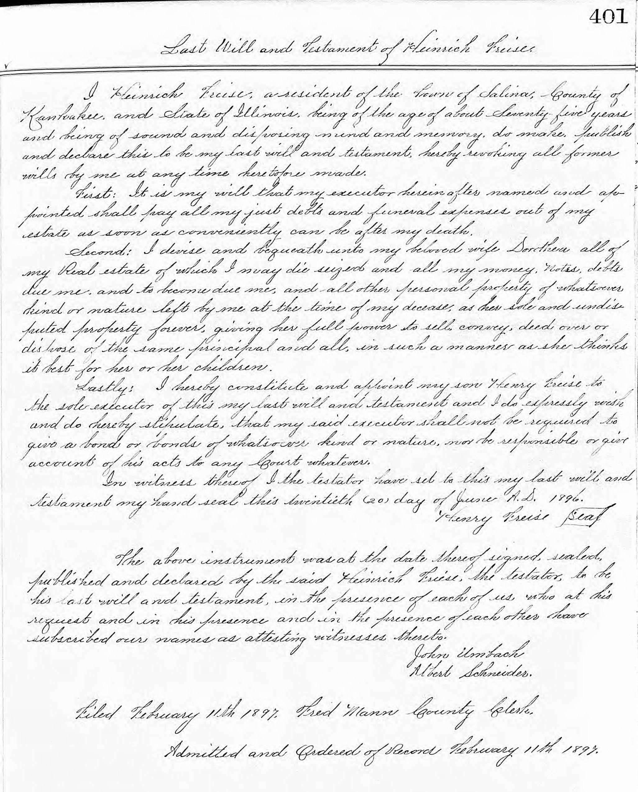 Father* | Henry Johnann Heinrich Christoph Freise b. 8 May 1821, d. 6 Feb 1897 |