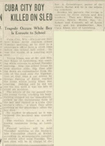 - Herbert J. Klaas b. 2 Jun 1930, d. 14 Jan 1936