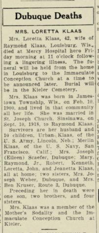 - Loretta Klaas b. 26 Oct 1933, d. 13 Jun 2019
