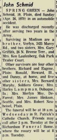 - John F. Schmid b. 1951, d. 26 Apr 1970