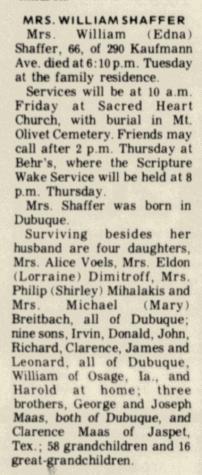 | Mother* | Edna Maas b. 23 Feb 1906, d. 26 Dec 1972 |