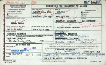 - Kreig Kile b. 22 Jan 1928, d. 25 Mar 1953