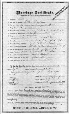 - [S247] U.S. Federal Census 1870 U.S. Federal Census, by Ancestry.com, Year: 1870; Census Place: Franklin, Sauk, Wisconsin; Roll: M593_1739; Page: 82B; Image: 170; Family History Library Film: 553238.