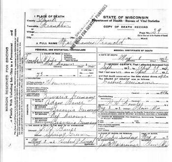 - [S245] U.S. Federal Census 1900 U.S. Federal Census, by Ancestry.com, Year: 1900; Census Place: Spring Green, Sauk, Wisconsin; Roll: 1816; Page: 11B; Enumeration District: 0145; FHL microfilm: 1241816.