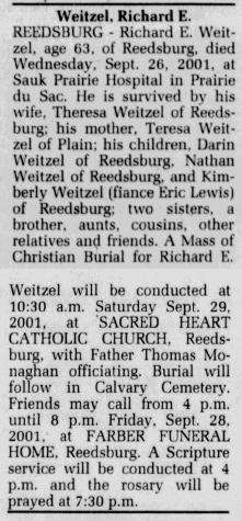 - Richard Eugene Weitzel b. 10 Mar 1938, d. Sep 2001