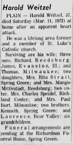 | Father* | Harold J. Weitzel b. 15 Feb 1915, d. 11 Mar 1972 |
