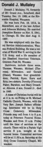 Children of Donald John Mullaley and Josephine M. Kaczor