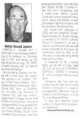 - Donald James Weitzel b. 30 Aug 1940, d. 23 Sep 2012