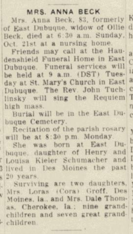 - [S243] U.S. Federal Census 1920 U.S. Federal Census, by Ancestry.com, Year: 1920;Census Place: Dubuque Ward 5, Dubuque, Iowa; Roll: T625_488; Page: 15A; Enumeration District: 144; Image: 659.