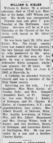 - Wilfred Kieler b. 1922, d. 6 Jun 1962
