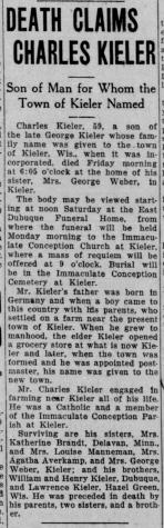 - Charles F. Kieler b. Jul 1881, d. Mar 1941