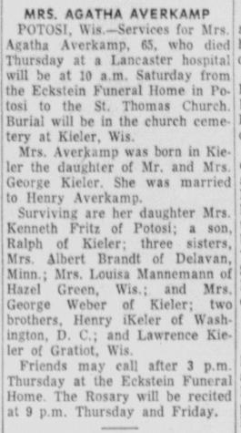 - Agatha E. Kieler+ b. 5 Feb 1892, d. 18 Jul 1957