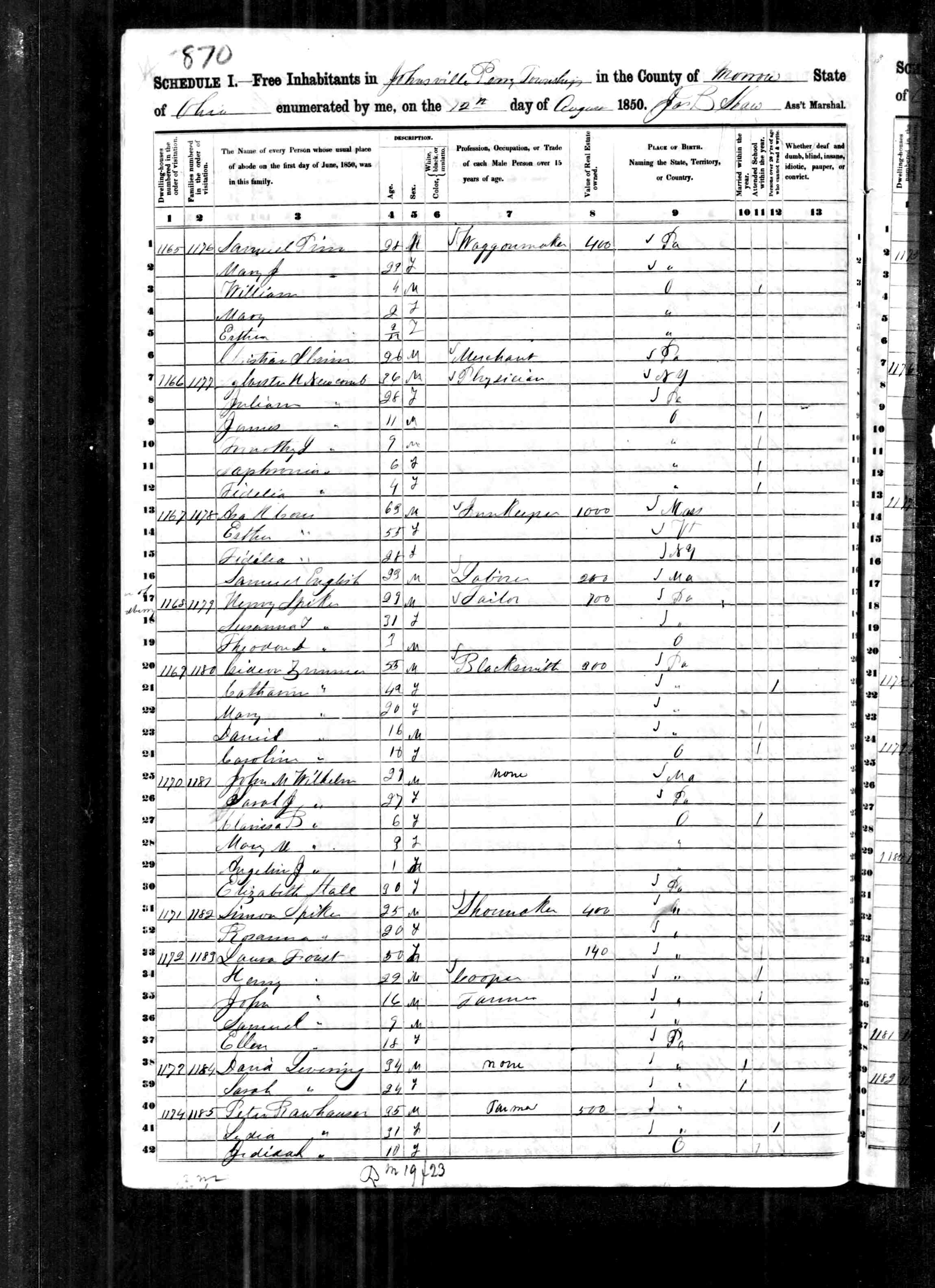1850 Johnsville Perry Morrow OH - Spyker, Henry + Simon