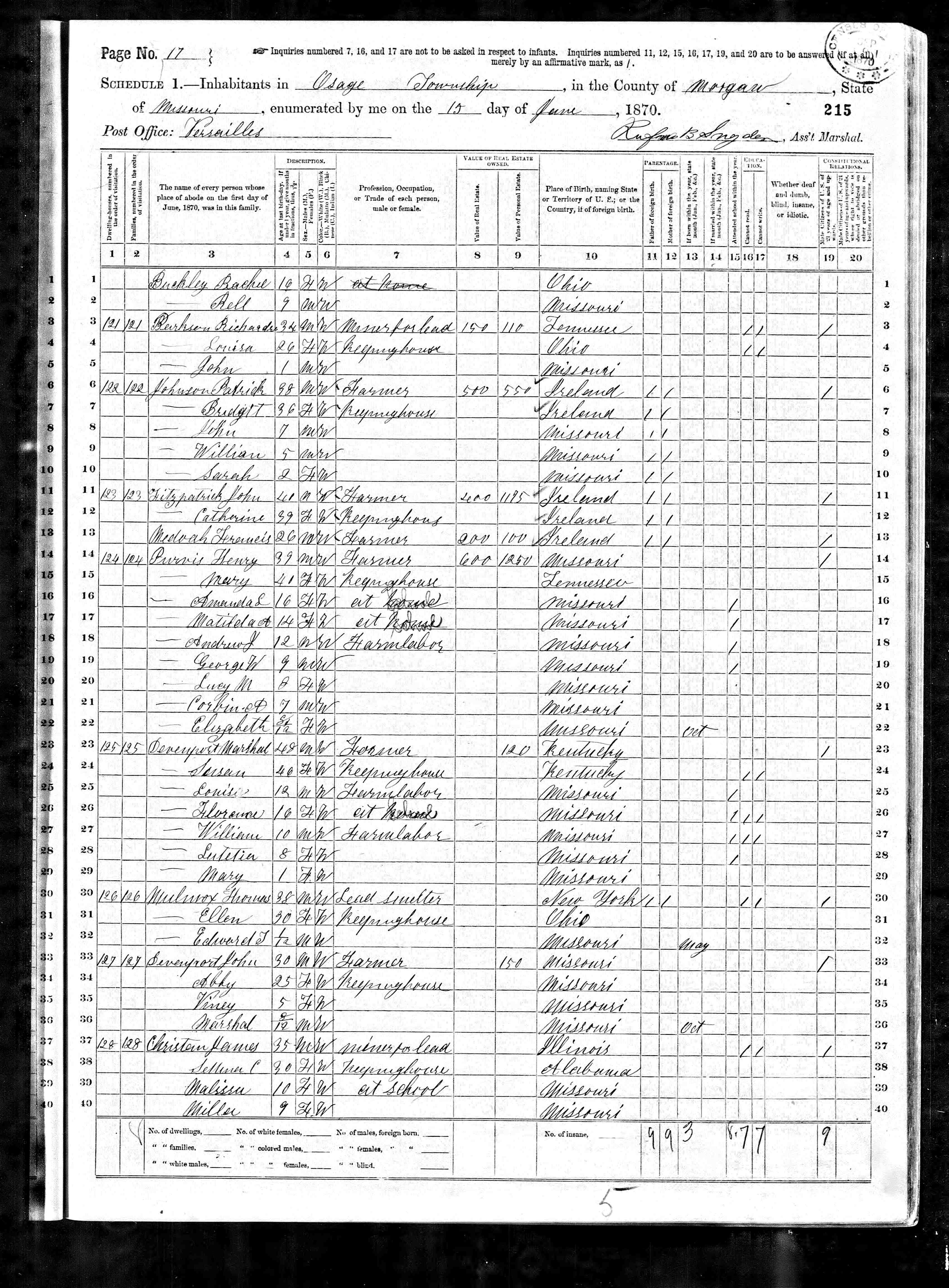 1870 Osage Morgan MO - Buckly (Buckley), William - part 2