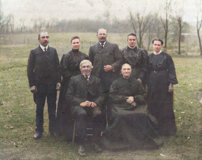 Johanna Sommervold Olson and Johannes Olson, her 2nd husband, with Johannas 5 grown children - after 1878-Colorized