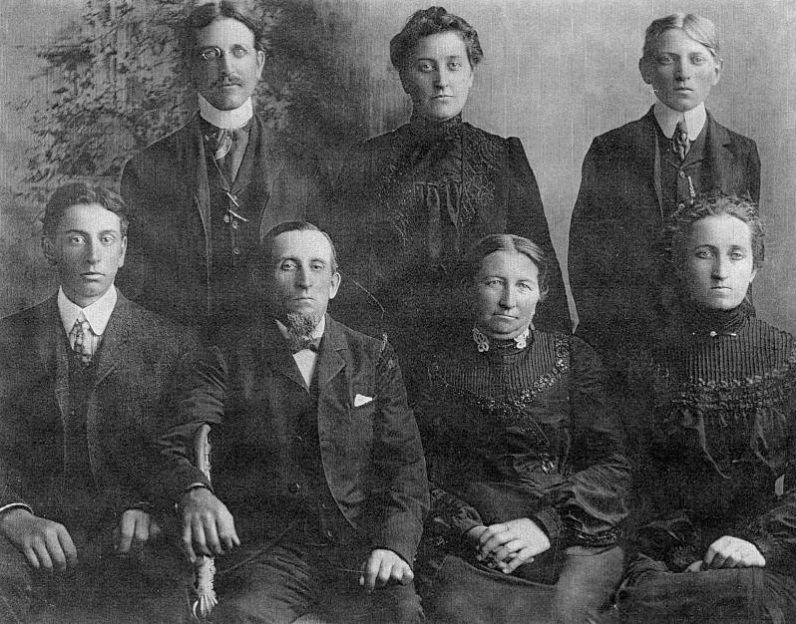 William and Doris (Hinrichs) Krug family - Back - Wm H, Bertha, Walter - Front - Hubert, Wm Sr, Dora (Hinrichs), Anna