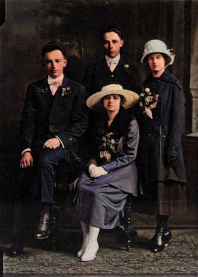 Louise Gunderman and Frank Richard wedding party 02 Feb 1918-Colorized
