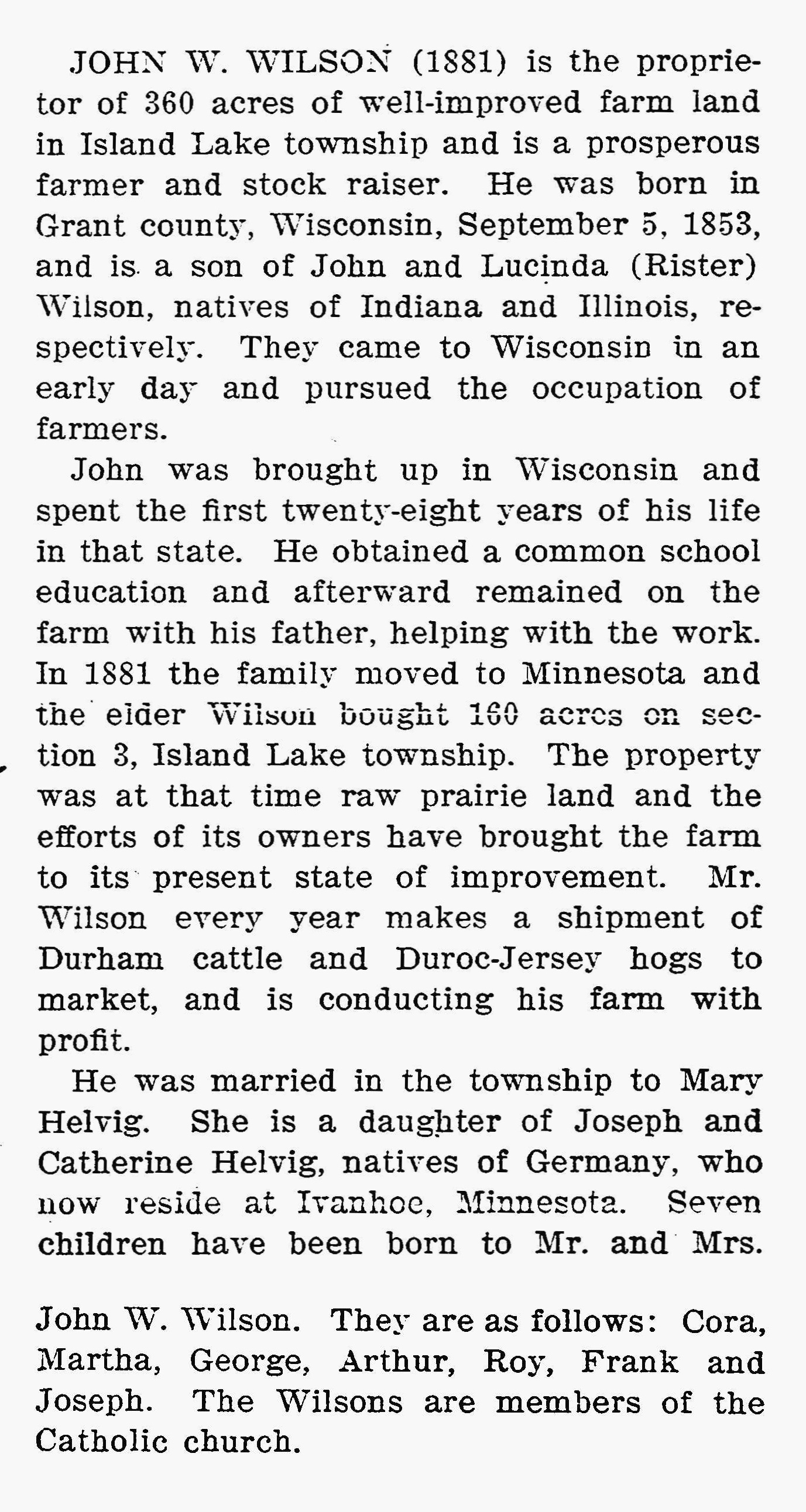 John W Wilson biography - An illustrated history of Lyon County, Minnesota - page 356-357