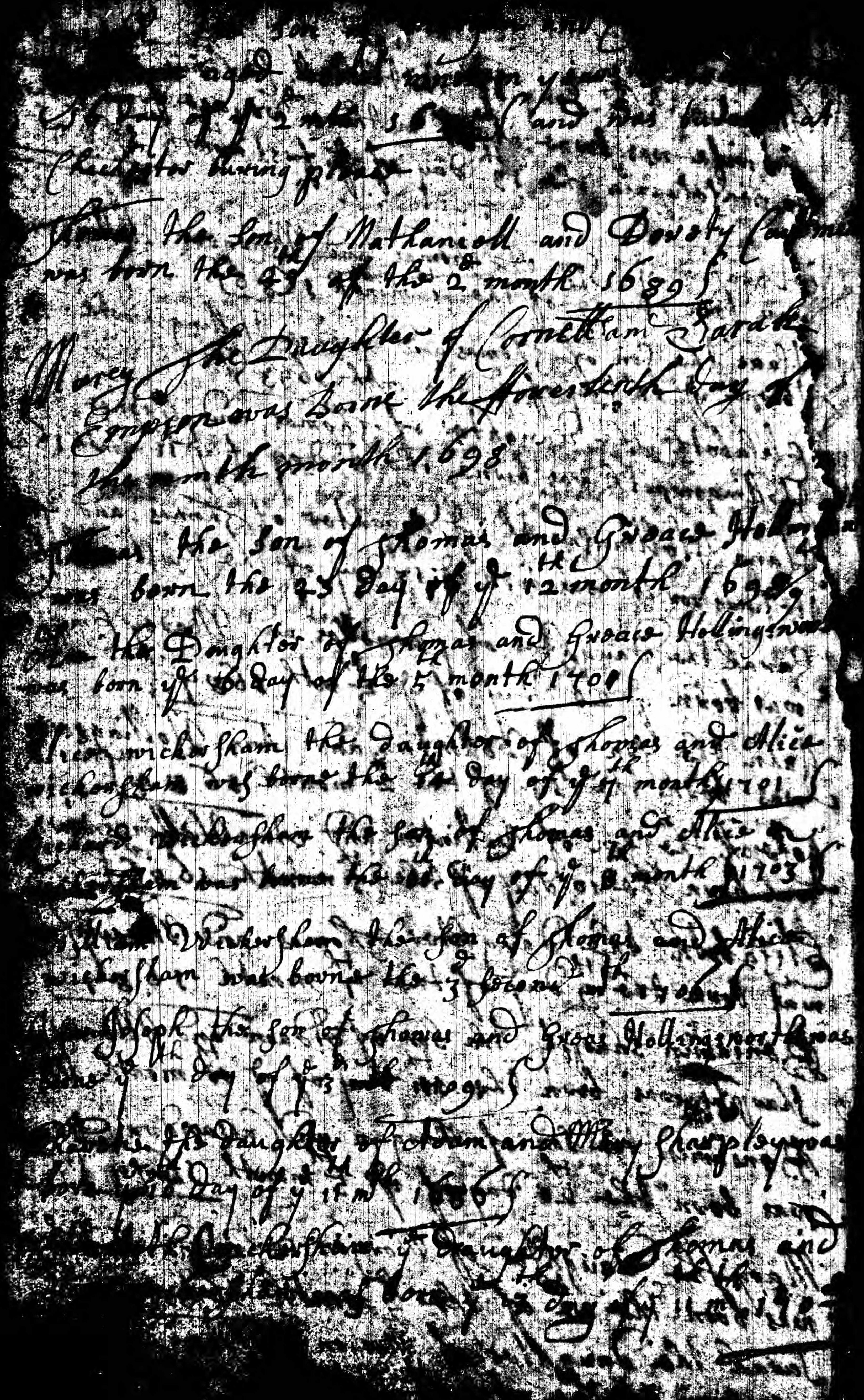 Thomas Wickersham children birth dates Kennett Quaker Monthly Meeting - Chester PA - Alice, William, Richard