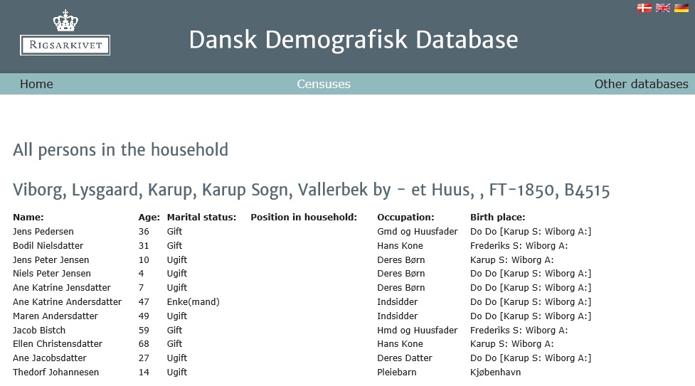 1850 Denmark Census - Viborg, Lysgaard, Karup, Karup Sogn, Vallerbek - Jens Pedersen