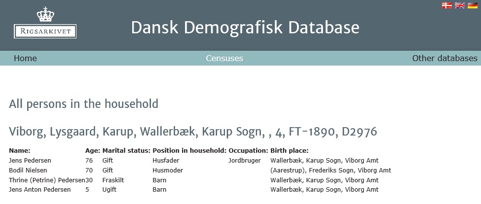 1890 Denmark Census - Viborg, Lysgaard, Karup, Wallerbęk, Karup Sogn - Jens Pedersen