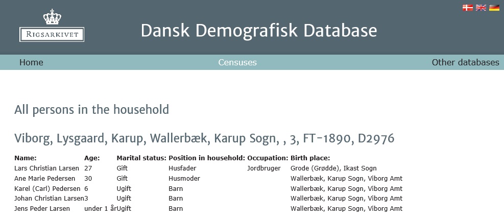 1890 Denmark Census - Viborg, Lysgaard, Karup, Wallerbęk, Karup Sogn - Lars Christian Larsen
