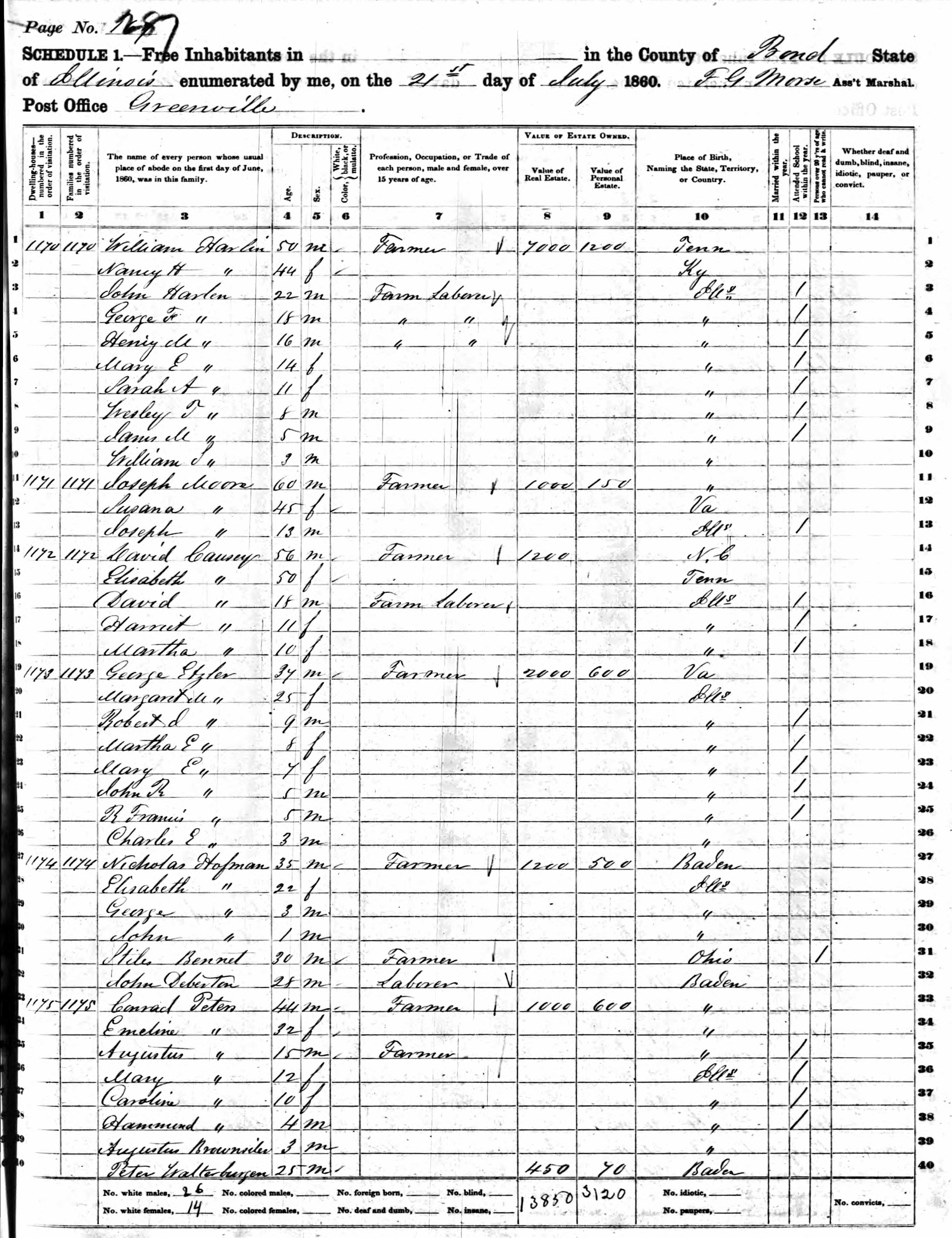 1860 US census - Greenville, Bond, IL - Peters, Conrad