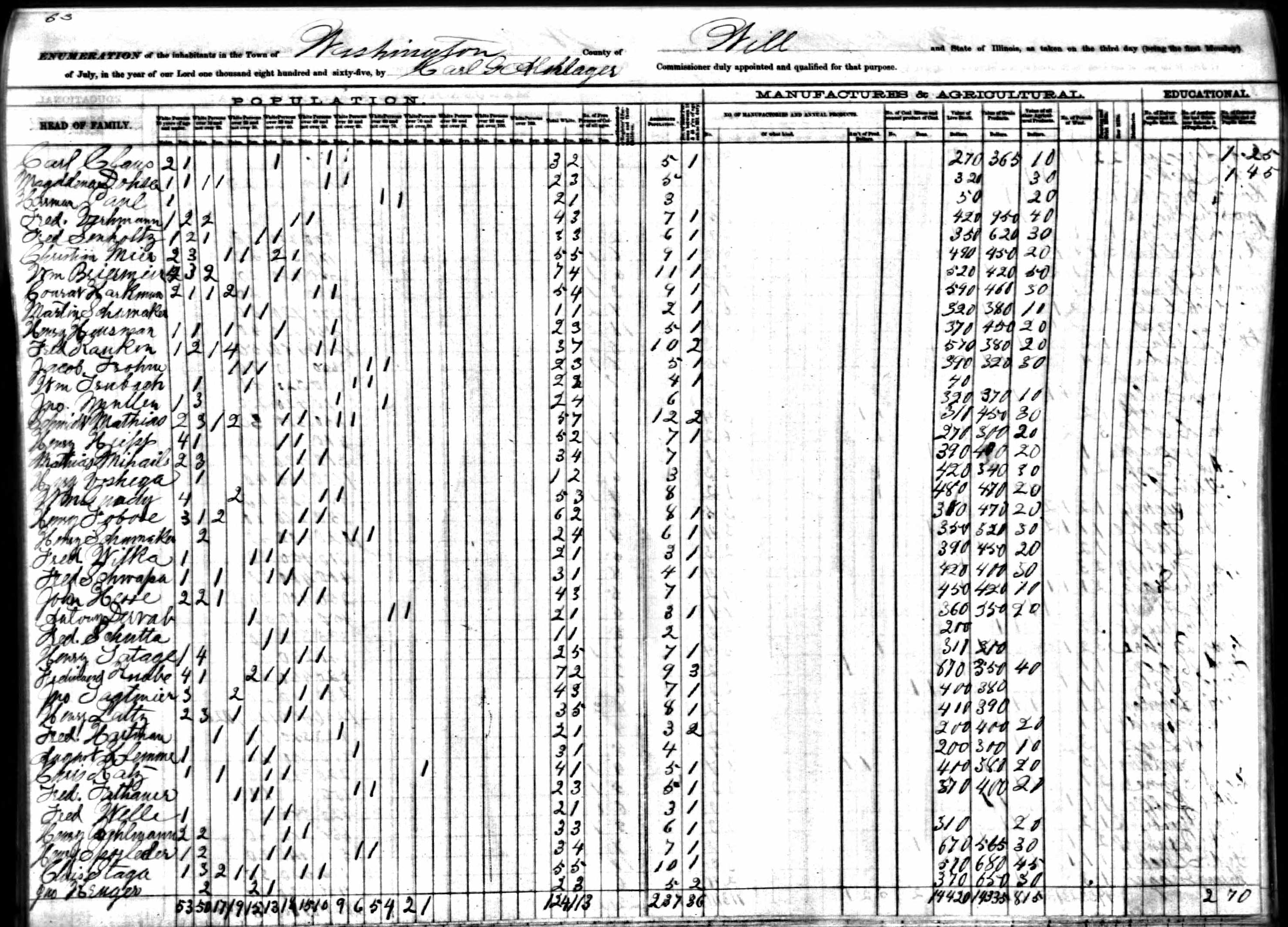 1865 Illinois state census - Washington, Will, IL - August Klemme family